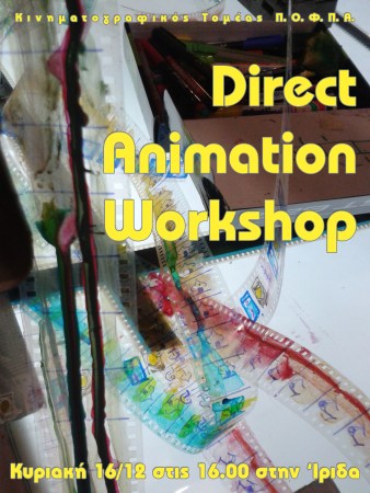 Οι «Τεχνικές του Φιλμ» και το «Τεχνικό Σεμινάριο», διοργανώνουν από κοινού workshop στο direct animation (ζωγραφική σε φιλμ 35mm), αυτή την Κυριακή 16/12 στις 16:00, στο χώρο της Ίριδας.