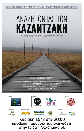 Ο Κινηματογραφικός Τομέας του Πολιτιστικού Ομίλου Φοιτητών Πανεπιστημίου Αθηνών (Π.Ο.Φ.Π.Α.) έχει την χαρά να φιλοξενεί το ντοκιμαντέρ “Αναζητώντας τον Καζαντζάκη» του Αλέξανδρου Σκούρα, καθώς και τον ίδιο το σκηνοθέτη, ο οποίος θα συζητήσει με το κοινό μετά το τέλος της προβολής.