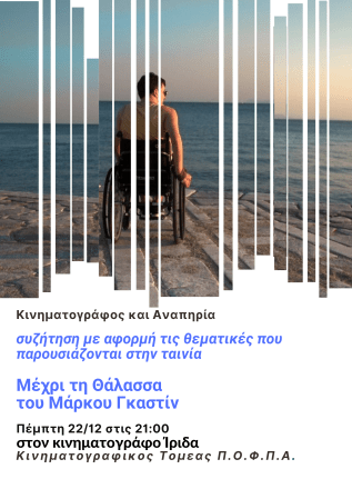 Τη Πέμπτη 22 Δεκεμβρίου στις 21.00 μμ προβολή της ταινίας ‘Μέχρι τη Θάλασσα / As far as the Sea’ στην Ίριδα , Ακαδημίας 45. Ο καταξιωμένος ντοκιμαντερίστας Μάρκος Γκαστίν στρέφει την κάμερα του στην κλινική Φυσικής Ιατρικής και Αποκατάστασης του ΚΑΤ, καταγράφοντας την καθημερινή πάλη των ασθενών.Μετά τη προβολή θα ακολουθήσει ανοιχτή συζήτηση με τον σκηνοθέτη Μάρκο Γκαστίν και τους συντελεστές της ταινίας.