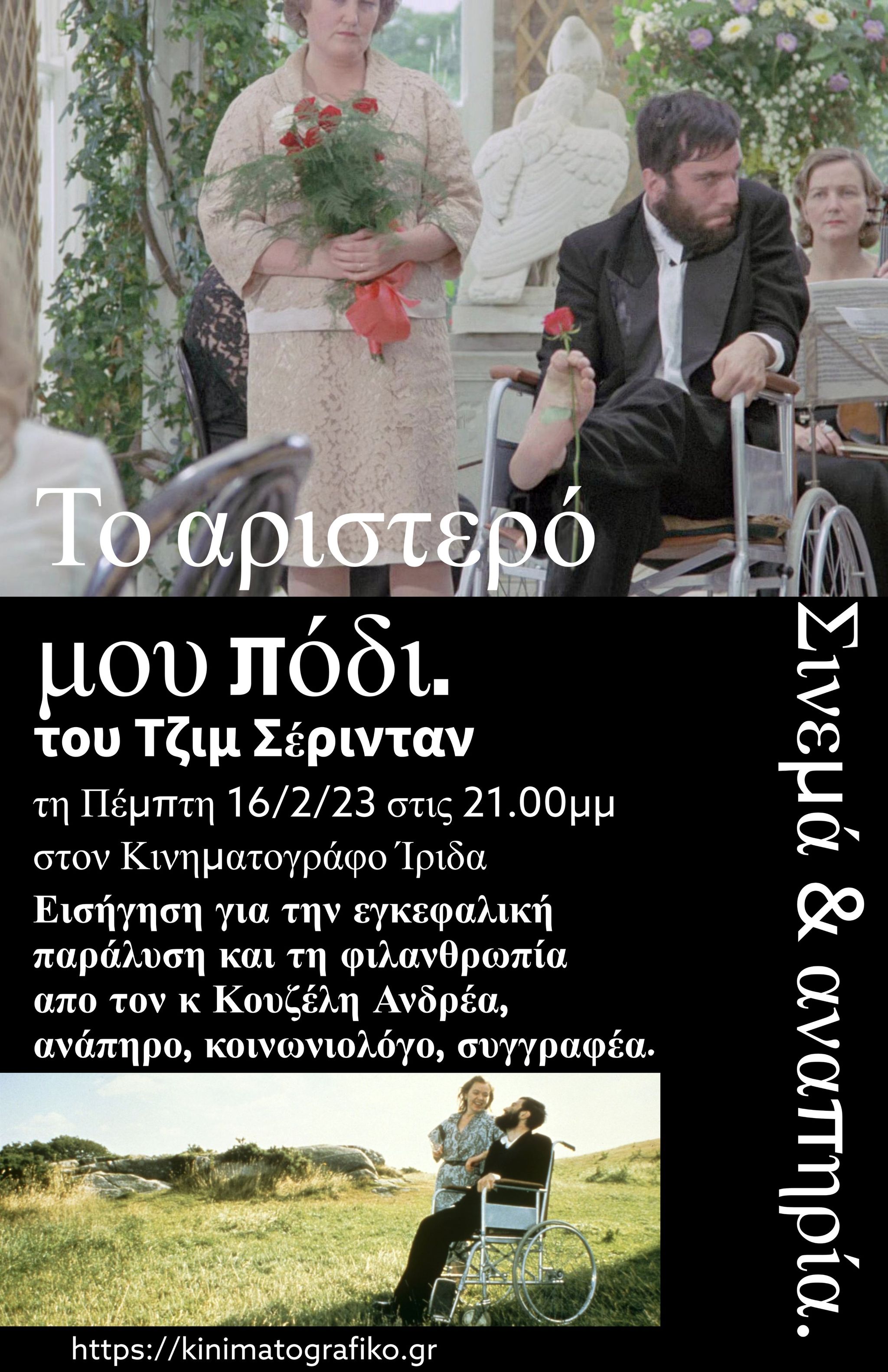 Την Πέμπτη 16 Φεβρουαρίου 2023 στις 21.00μμ θα παρουσιαστεί η πρωτοποριακή ταινία ‘Το αριστερό μου πόδι / My left foot’ του Τζιμ Σέρινταν, γυρισμένη το 1989.