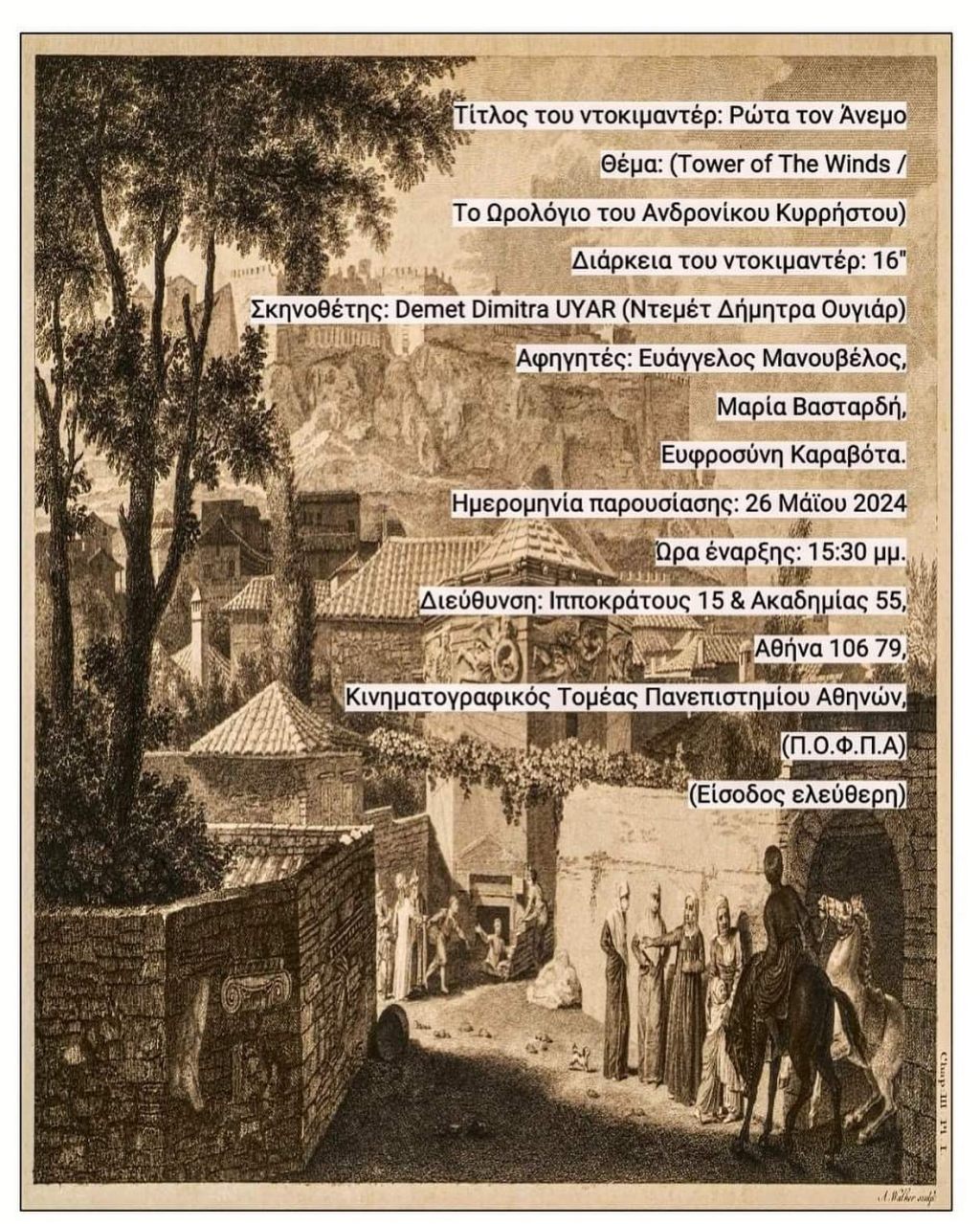 Παρουσίαση ντοκιμαντέρ Ρώτα τον Άνεμο.Κυριακή 26 Μαΐου 15:30