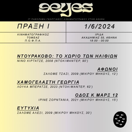 Ο Κινηματογραφικός Τομέας σε συνεργασία με την ομάδα 9EYES φιλοξενεί στην Ίριδα προβολές ταινιών γεωργιανών κινηματογραφιστριών /κινηματογραφιστών της τελευταίας εικοσαετίας που άπτονται των εξής θεματικών: πόλεμος, μετανάστευση, κοινωνία και τοπικές κοινότητες, συστημικός ανταγωνισμός.