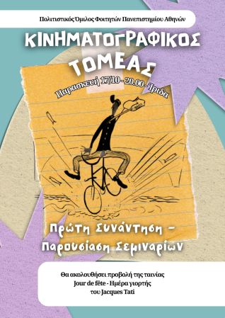 Η ακαδημαϊκή χρονιά του Κινηματογραφικού Τομέα ξεκινάει την Παρασκευή 17/10 στις 20:00, με την πρώτη συνάντηση των μελών για φέτος στην Ίριδα!