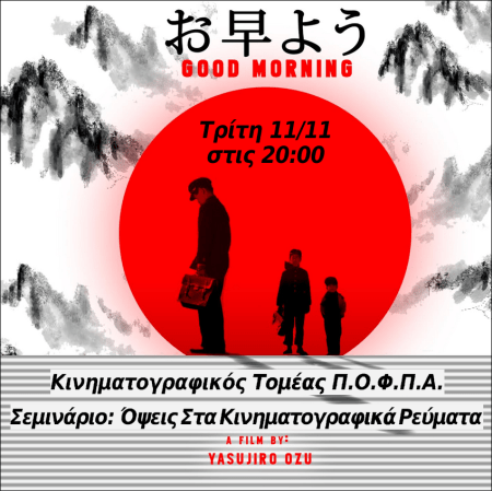 μέσω της αριστοτεχνικής χρωματικής παλέτας σάτυρα Καλημέρα (Good Morning, Ιαπωνικά Ohayô) 1959,