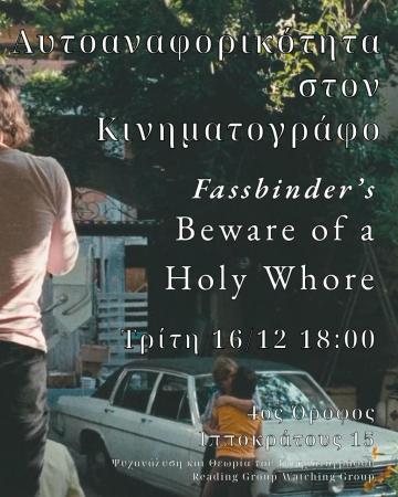 Η αυτοαναφορικότητα στον κινηματογράφο μέσα από το Beware of a Holy Whore του Rainer Werner Fassbinder.
