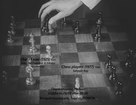Το σκάκι πρωταγωνιστής ανάμεσα στο δράμα την εμμονή και την κωμωδία όπως παρουσιάζεται στο Chess Fever (1925) των Vsevolod Pudovkin & Nikolai Shpikovsky και το Chess players (1977) του Satyajit Ray