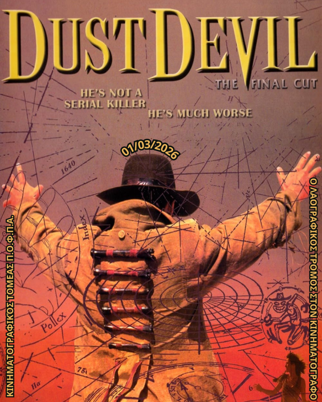 Το σεμινάριο «Ο Λαογραφικός Τρόμος στον Κινηματογράφο» και ο Κινηματογραφικός Τομέας του Π.Ο.Φ.Π.Α. στη 01/03/26 (18:00 μ.μ.) εξετάζουν τις νοτιοαφρικανικές υπερφυσικές παραδόσεις και τη νεότερη μυθολογία του οτοστόπ, μέσω της ταινίας του Richard Stanley, Dust Devil (1992).