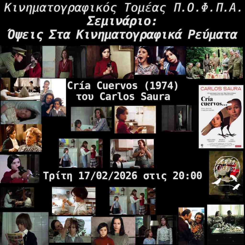 Παρουσίαση : Η Ισπανική Κοινωνία κατά τη περίοδο του Φράνκο, μέσα από το μικρόκοσμο ενός παιδιού στρατιωτικής οικογένειας, υπό το πρίσμα του συγκλονιστικής εικονοποιίας και καθηλωτικού Cria Cuervo (Θρέψε Κοράκια 1976) του αριστοτέχνη Carlos Saura.