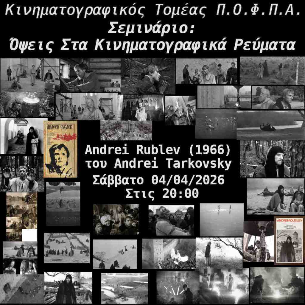 Παρουσίαση : Ο αναστοχασμός της φύσης και του σκοπού του καλλιτέχνη, μέσω του αρτίου φιλμικής γλώσσας Andrei Rublev (Αντρέι Ρουμπλιώφ 1966) του μαιτρ των μαιτρ Andrei Tarkovsky.